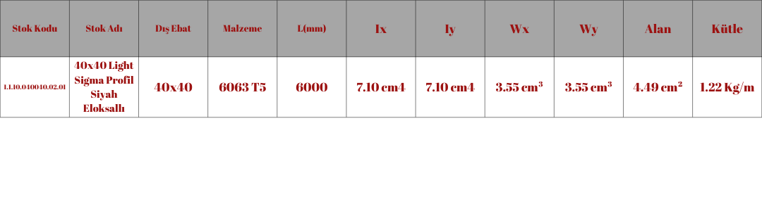 40X40 LİGHT SİGMA PROFİL SİYAH ELOKSALLI