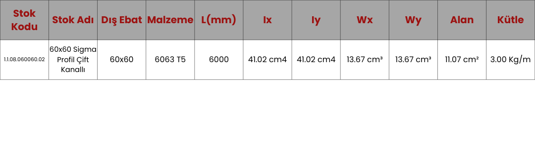 60X60 SİGMA PROFİL ÇİFT KANALLI