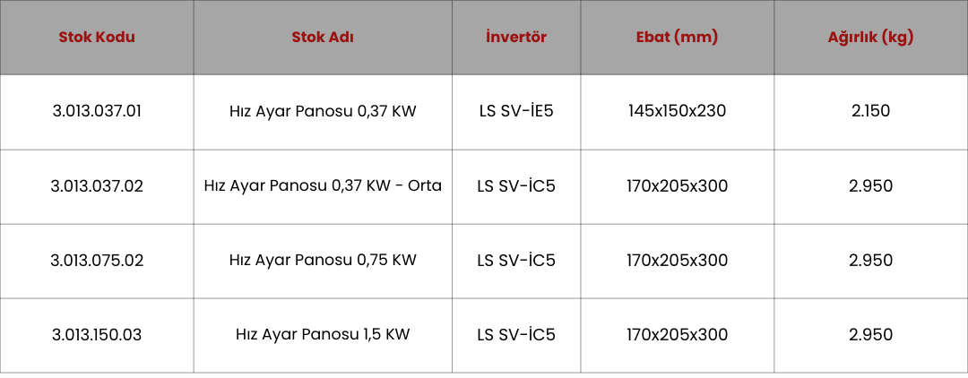 Konveyör bantları ve diğer hareketli sistemlerde üzerinde bulunan potansiyometre aracılığı ile sistemin istenilen hızda çalışmasını sağlayan panolardır.