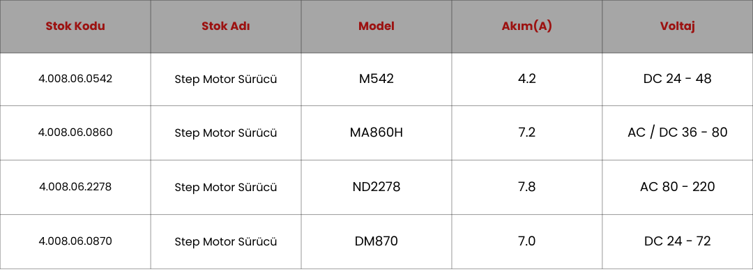 Kullanılan step motorun akım ve voltajına uygun sürücü seçimi yapılır.